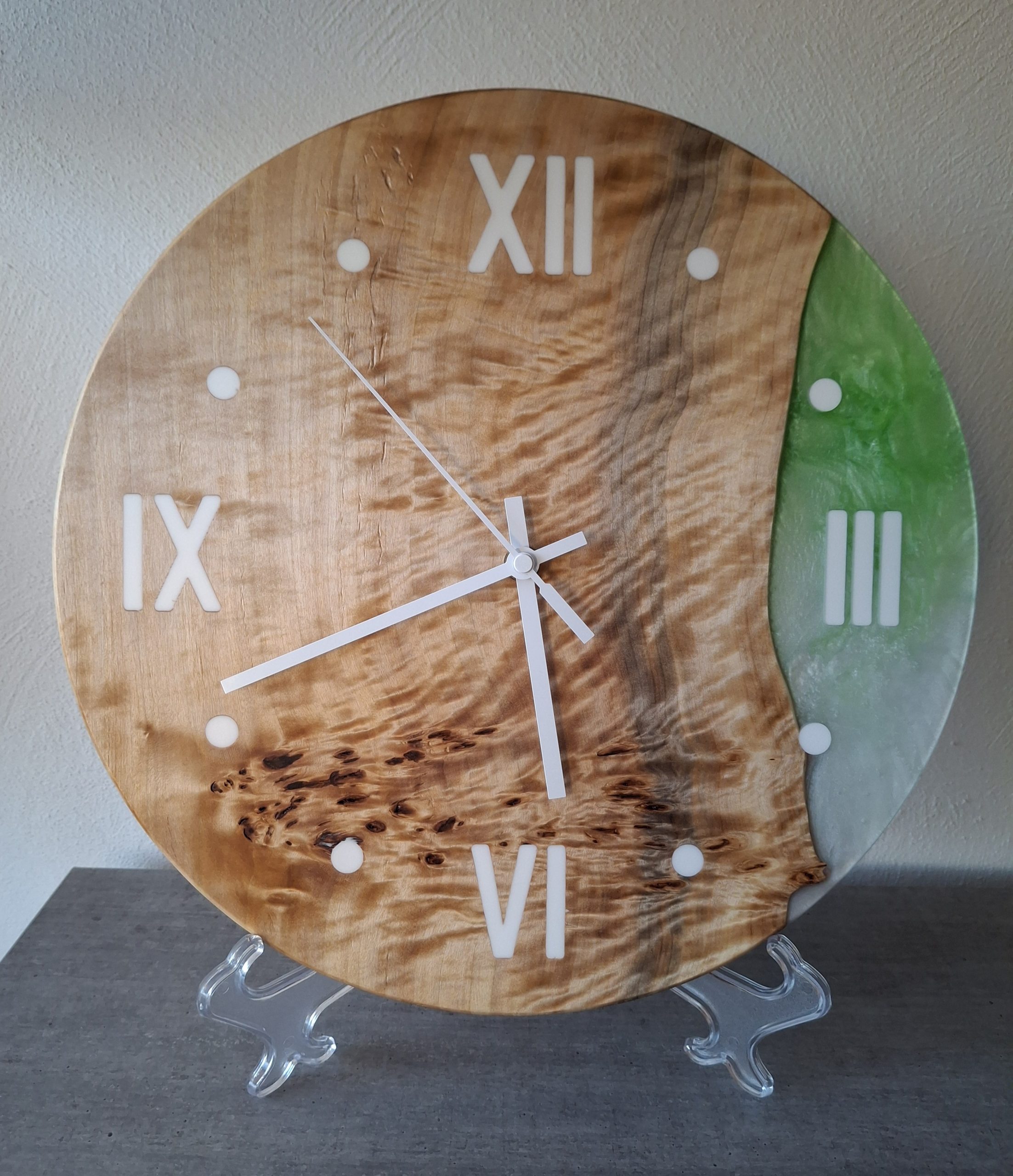 Durch den Einsatz von hochwertigem Epoxidharz ist die Uhr nicht nur optisch ansprechend, sondern auch besonders strapazierfähig und pflegeleicht. Sie wird Ihnen viele Jahre Freude bereiten.