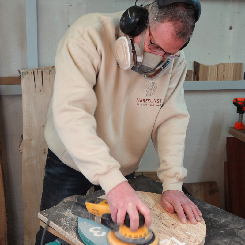 Hinter Harzkunst stehe ich, Matthias Senghaas. Meine Leidenschaft gilt einem Werkstoff, der so alt ist wie die Menschheit selbst: Holz. Doch für mich ist Holz nicht einfach nur ein Baumaterial. Jedes Stück erzählt durch seine Maserung, seine Risse und seine Form eine eigene Geschichte – geformt über Jahrzehnte in der freien Natur.